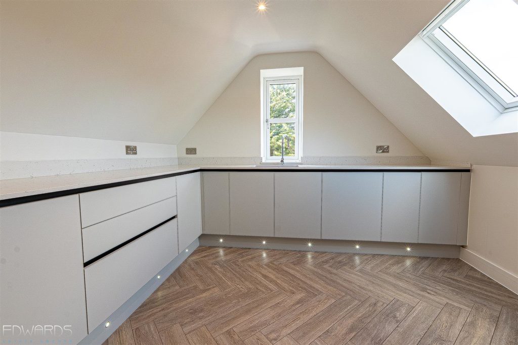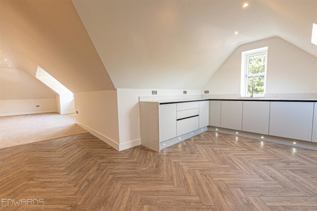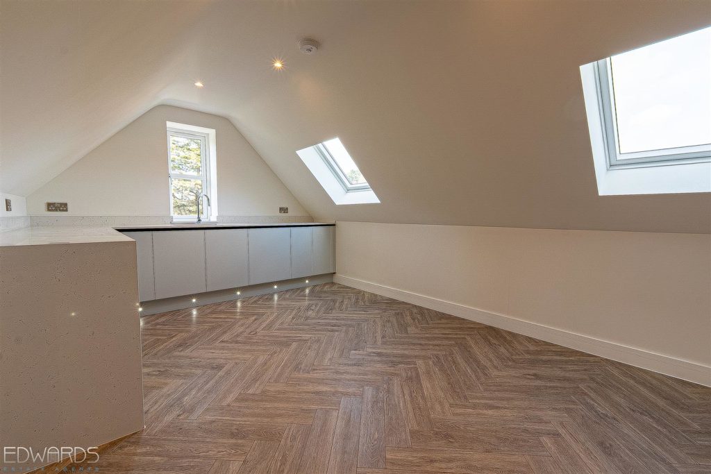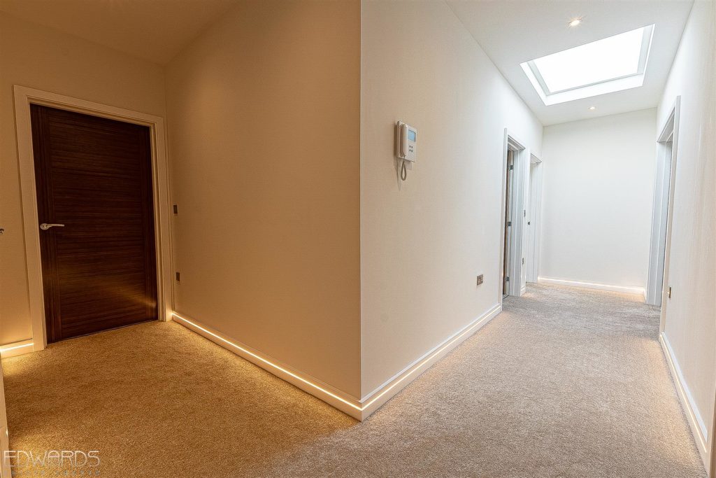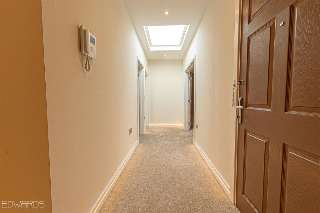 The penthouse apartment on the second floor has lift access from the impressive reception hallway, as well as stairway access. Accommodation includes three large double bedrooms, a generously sized lounge/dining room and an equally spacious, fully fitted kitchen with a comprehensive range of base and wall units as well as a generous installation of Bosch integrated appliances.