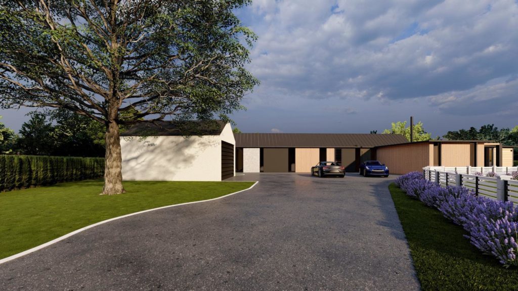 to re-model existing farm buildings on the site to create a four bedroom, single storey family home with approximately 3,000 sq.ft of accommodation.