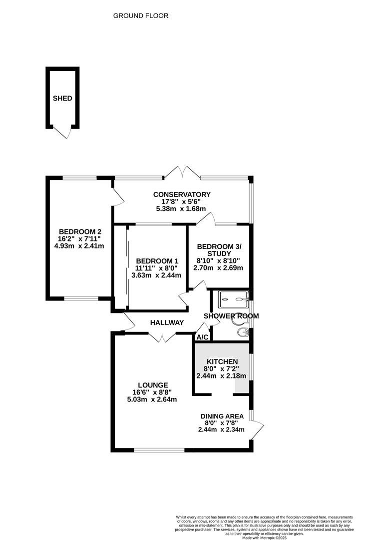 The main bedroom is a generous double, featuring a full bank of built-in wardrobes with sliding mirror fronted doors. A versatile third bedroom, currently utilised as a study, offers access to a recently updated conservatory, which boasts full UPVC double glazed windows and French doors that open to the rear garden. The second bedroom, formerly the garage and recently converted with new flat roof, has been transformed into a good-sized double room with dual aspect windows. All bedrooms are serviced by a well-appointed modern shower room, complete with a large walk-in shower cubicle, fully tiled walls and floor, vanity storage, and a heated towel rail.