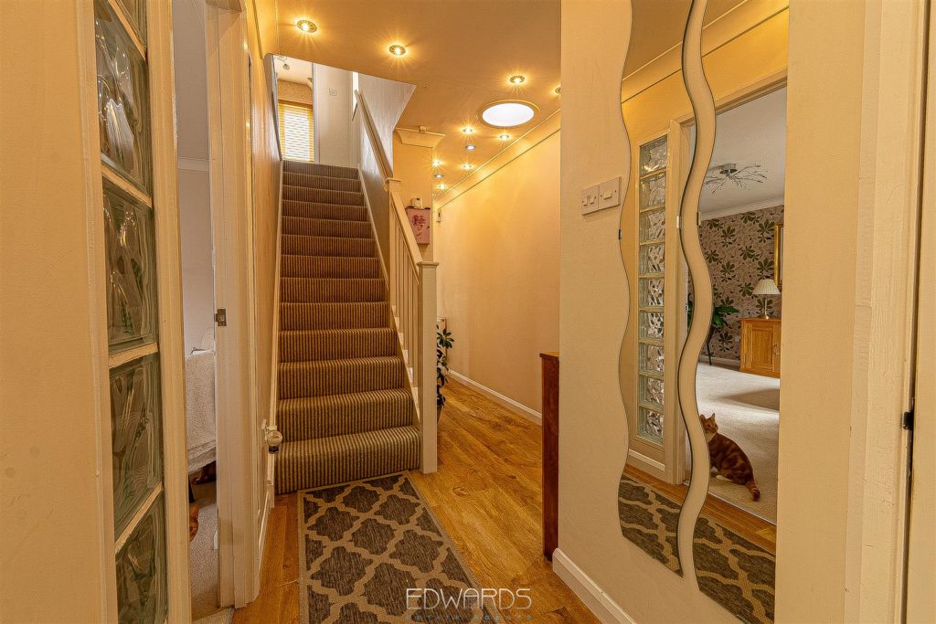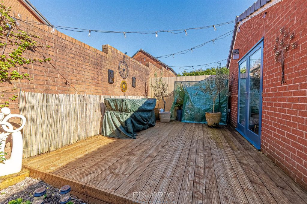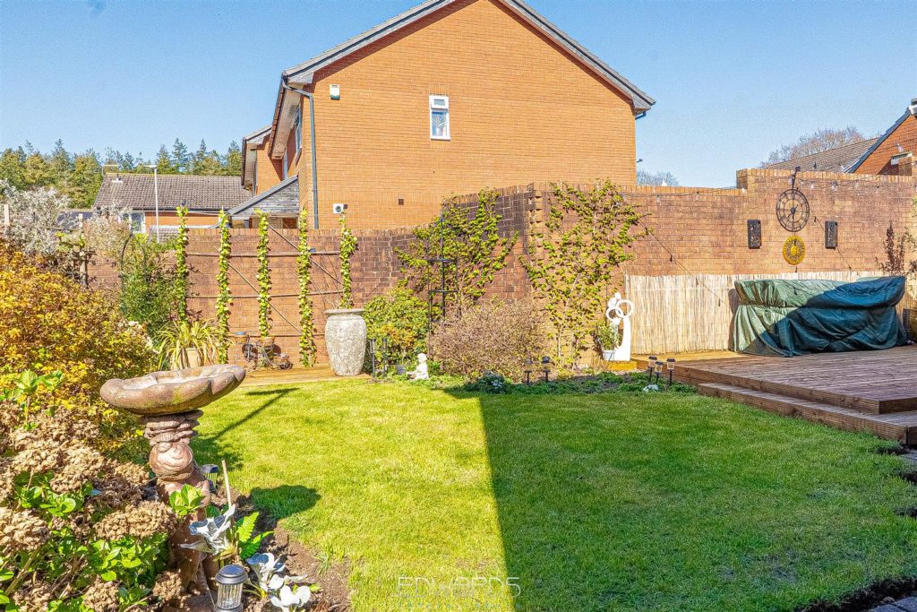 Outside, the enclosed rear garden offers a good degree of privacy, enhanced by boundary walls and established planting. It features a well-maintained lawn, patio, and decking area, perfect for enjoying the outdoors.