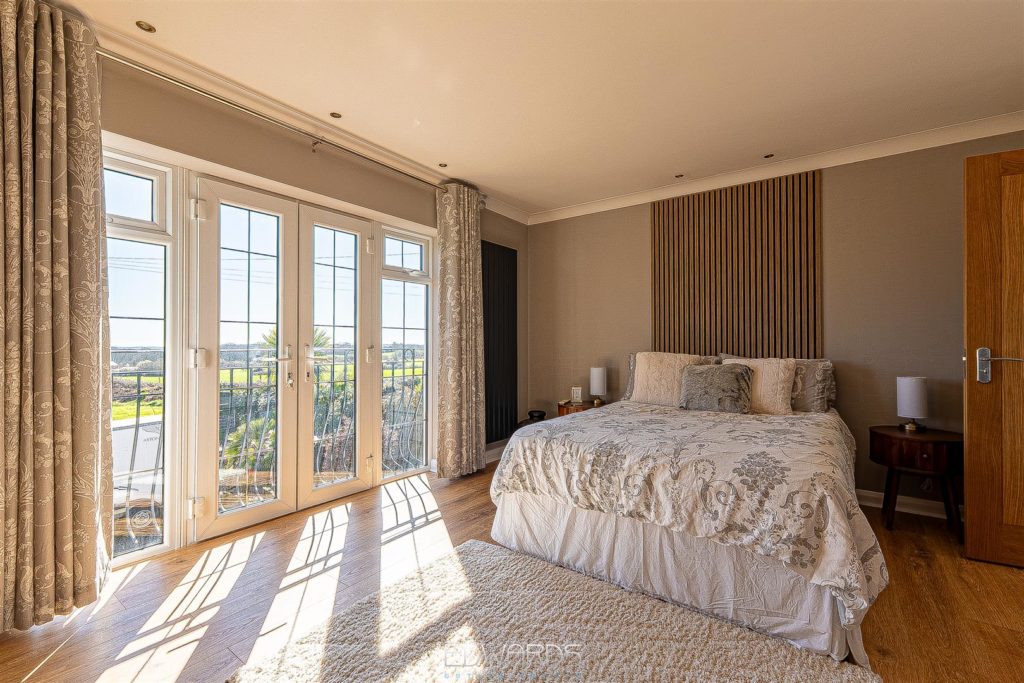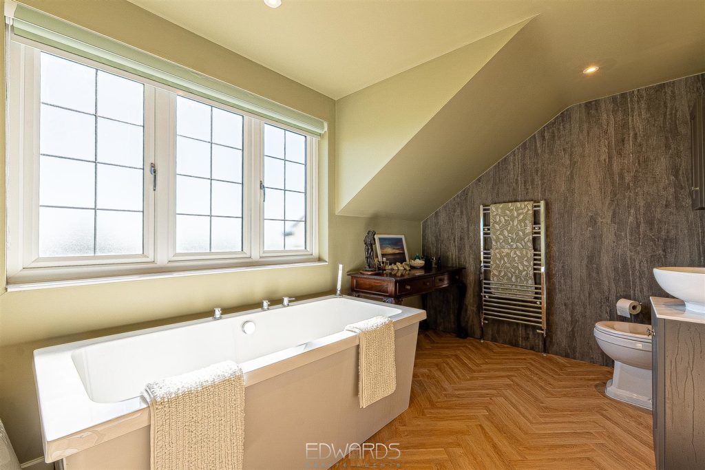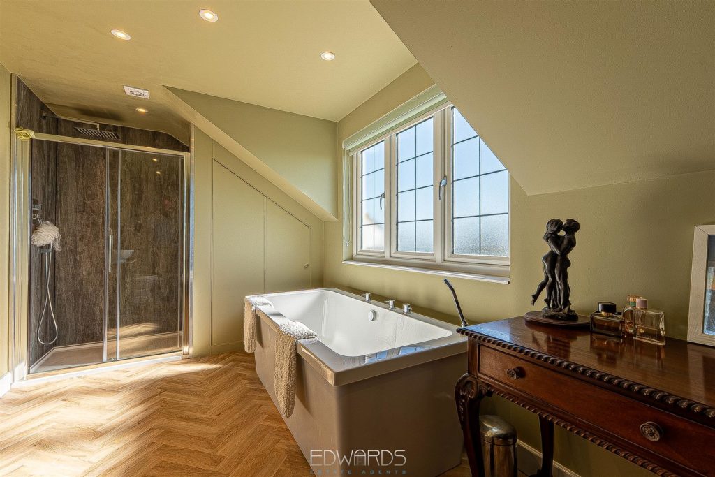 On the first floor there are five bedrooms. The master suite has built-in wardrobes and a luxuriously appointed ensuite bathroom with separate shower enclosure. Bedroom two has a Juliette balcony with delightful view of Horton tower, as well as an ensuite shower room and generous built-in storage. The remaining three bedrooms – two of which have built-in wardrobes – are served by a fully tiled family bathroom.