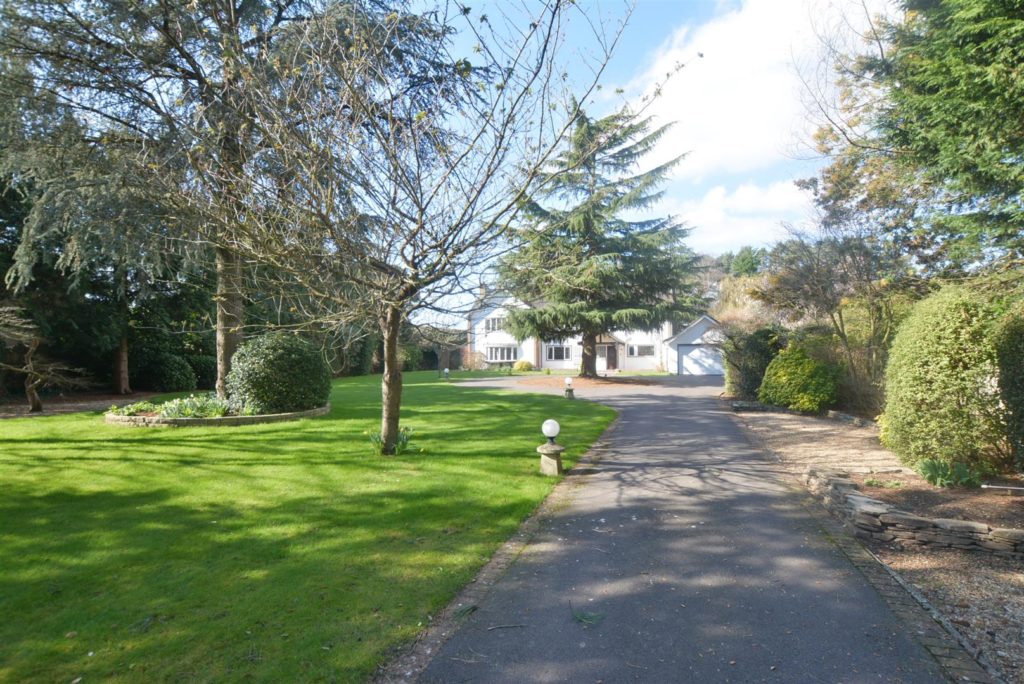 The house is approached with a carriage driveway leading to the attached double garage.