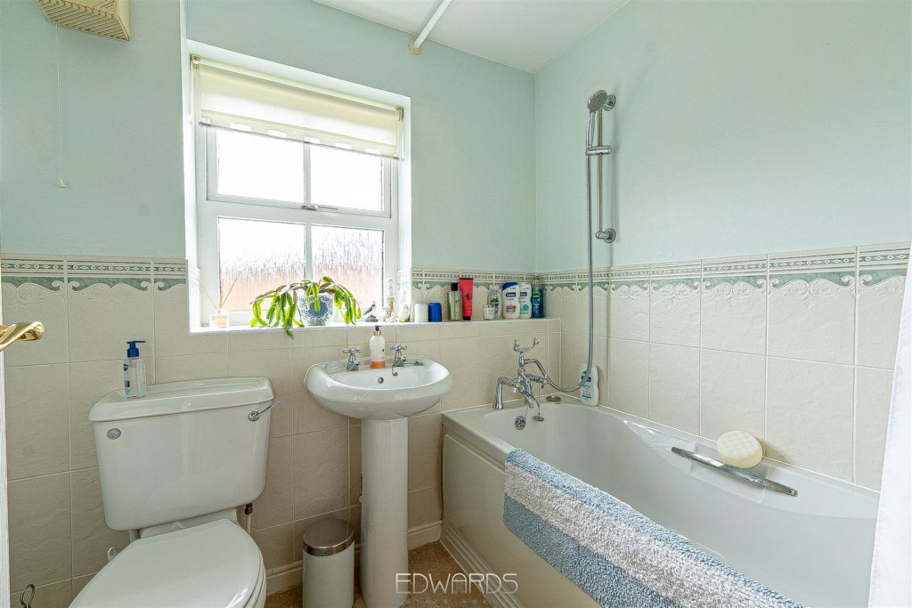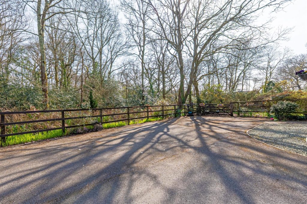 There is ample off road parking to the front of the property as well as access to the attached single garage. The enclosed entrance porch leads to the hallway with stairs rising to the first floor and a useful understairs cupboard. The well proportioned sitting room has a feature fireplace and bay window with delightful views of neighbouring woodland, whilst the dining room has French doors opening to the neatly landscaped rear garden. The kitchen is fitted with a generous range of base and wall units and integrated appliances with open access to the adjoining utility area with space for washing machine and tumble dryer. A side porch has doors to front and rear.