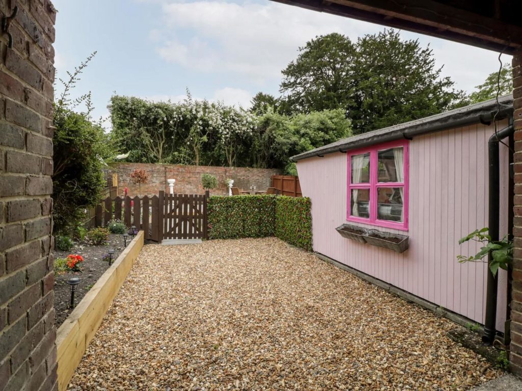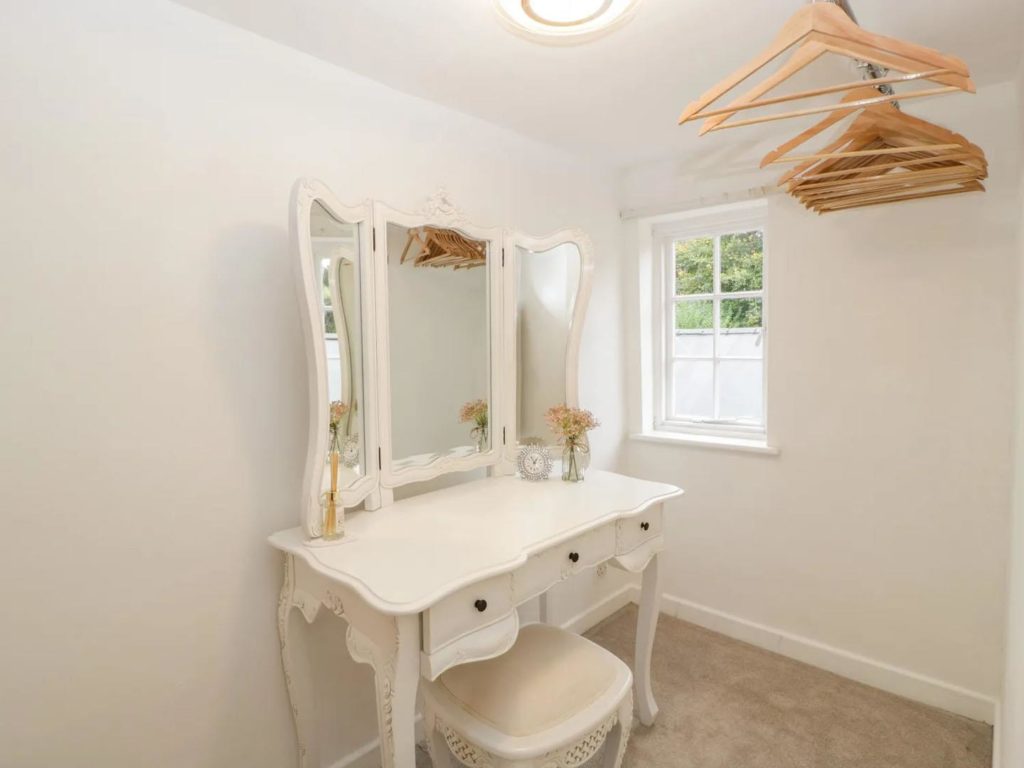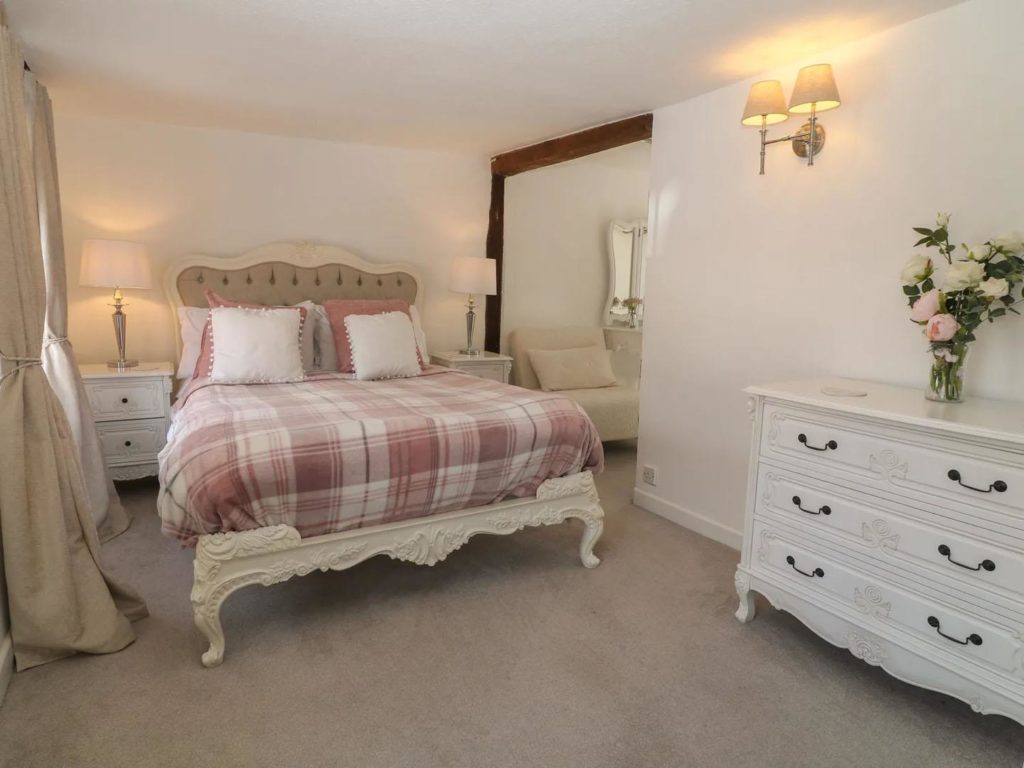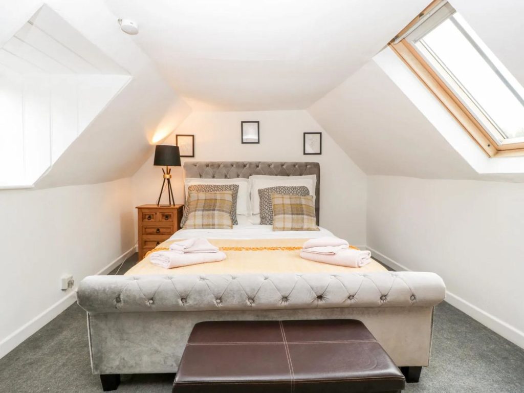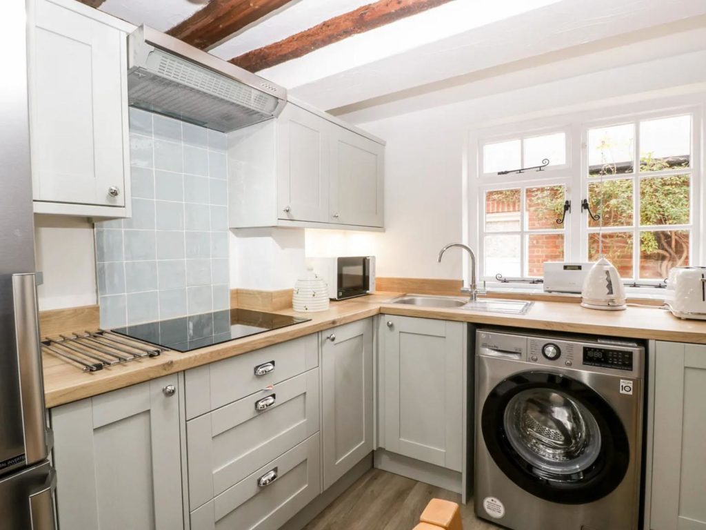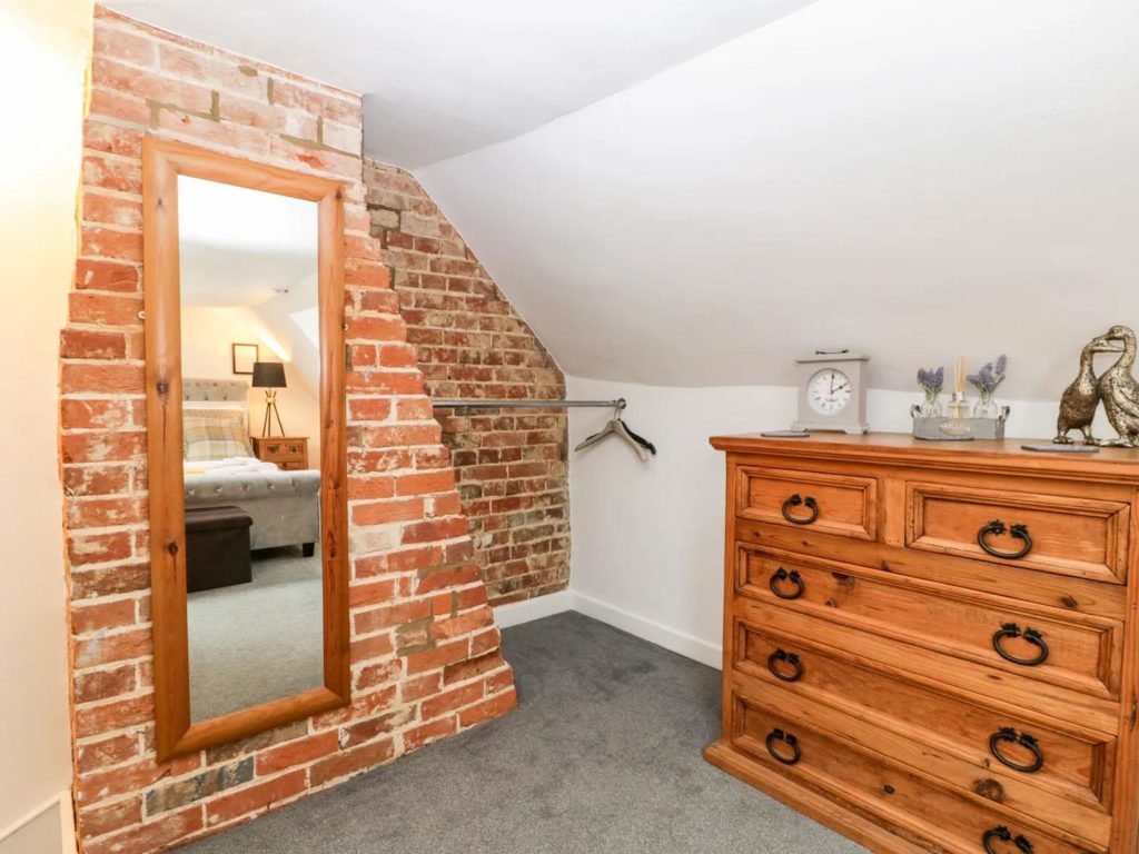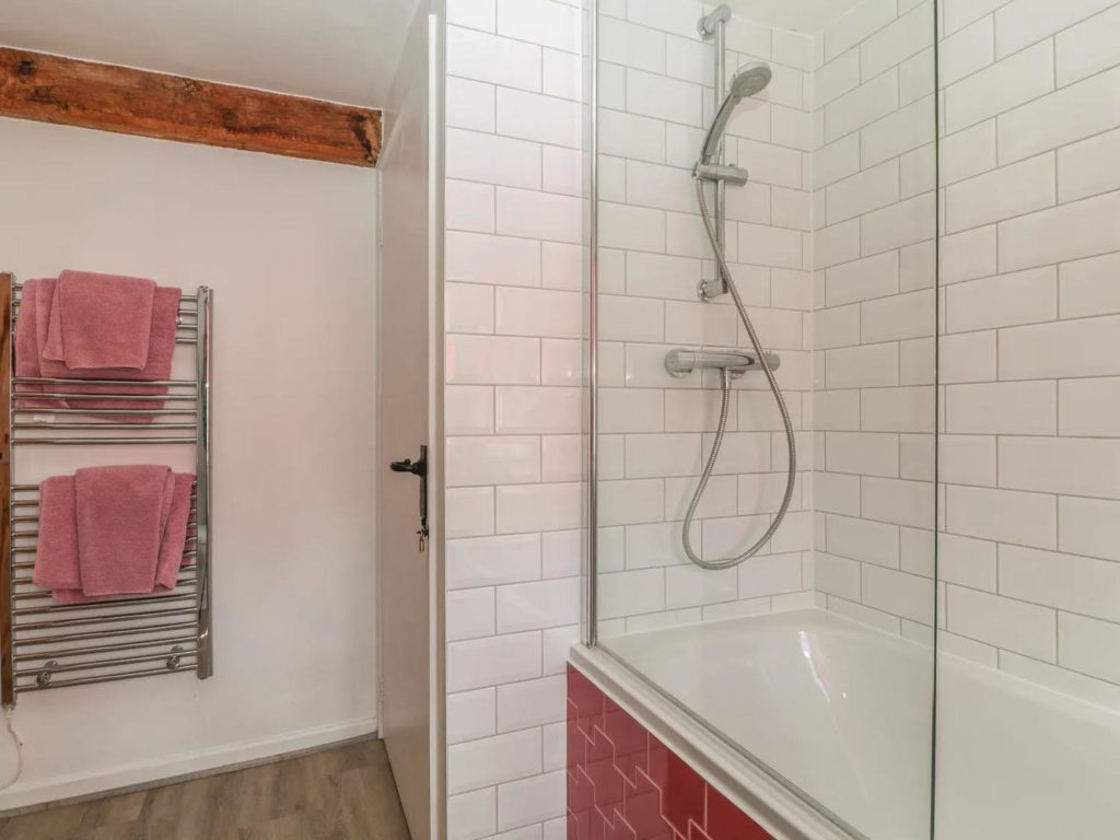 On the ground floor there is a modern kitchen overlooking the rear courtyard. With room for table and chairs, there is a larder cupboard next to the stairs and open access through to the cosy sitting room with a woodburner in the feature inglenook fireplace. The dual aspect master bedroom occupies the first floor, along with a bathroom which includes a shower over the bath. A further double bedroom is at second floor level.