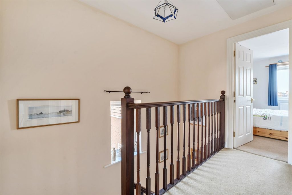 On the first floor, the spacious lounge/dining room is bathed in natural light, thanks to two sets of windows and a delightful Juliet balcony. The kitchen/breakfast room, located at the rear, is fitted with beach-fronted units and modern appliances, providing ample space for dining. French doors lead to a charming balcony, perfect for enjoying morning coffee or evening relaxation.