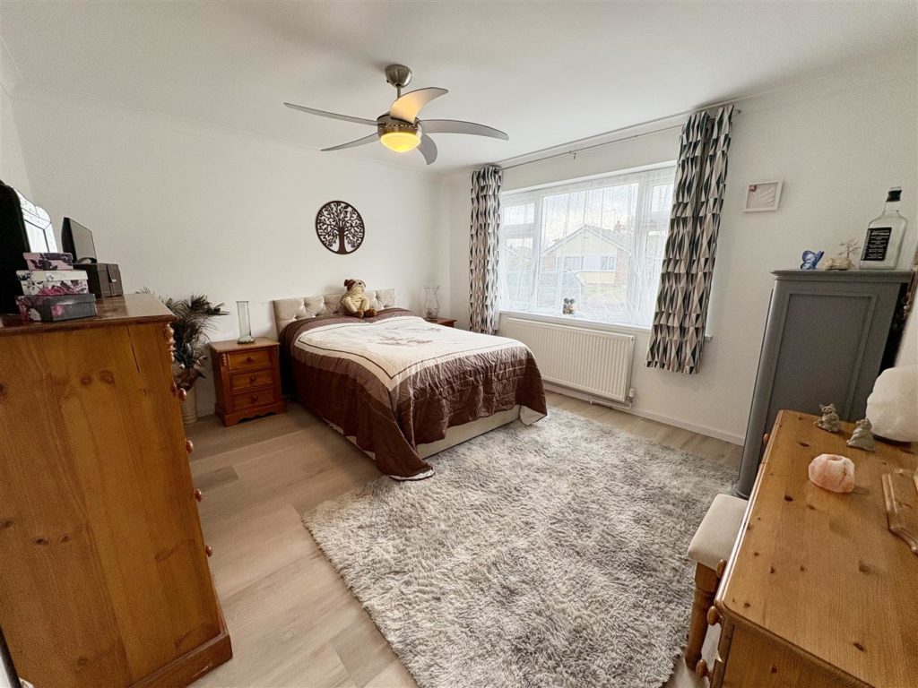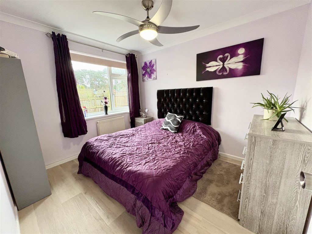 As you enter, you are greeted by a welcoming entrance hall featuring two built-in storage cupboards and a hatchway leading to the roof space. The spacious living room boasts a large window that overlooks an enclosed section of the lawned garden. Adjacent to the living area is a versatile playroom, ideal for.