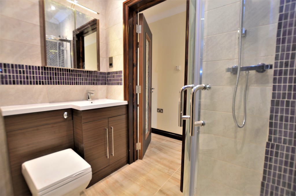 From the kitchen/living is the entrance to the bedroom/living room depending on what best suits, and the downstairs bathroom consisting of WC, sink and shower. Bedroom two is also on the ground floor.