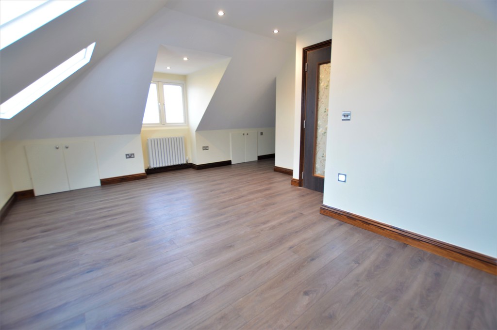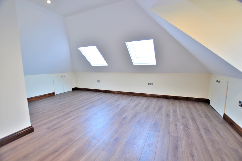 The master bedroom is on the first floor, it has four velux windows offering plenty of light. Also on the first floor is another bathroom with a bath/shower, WC and sink.