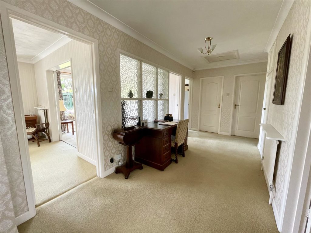 Externally at the front, in addition to a large area of lawn with mature planting, an extensive driveway provides parking for multiple vehicles. At the rear enjoying a great deal of sunshine due to its Southerly facing direction, the rear garden is well kept and established.