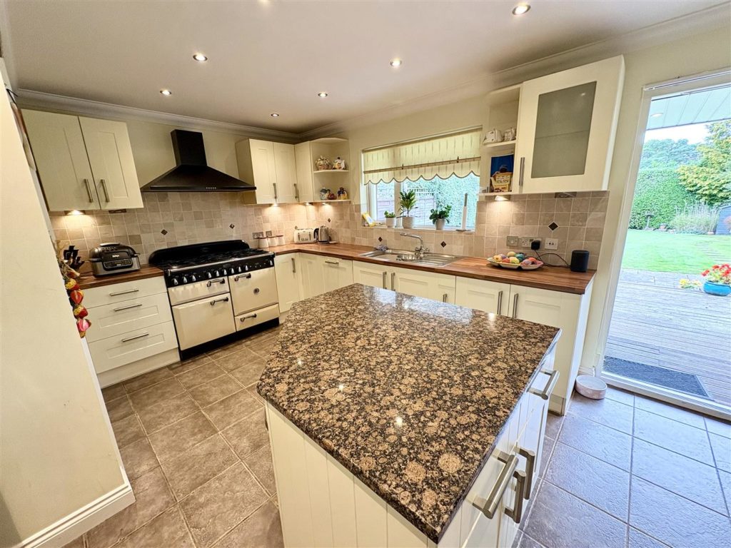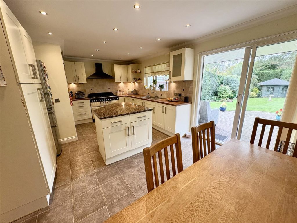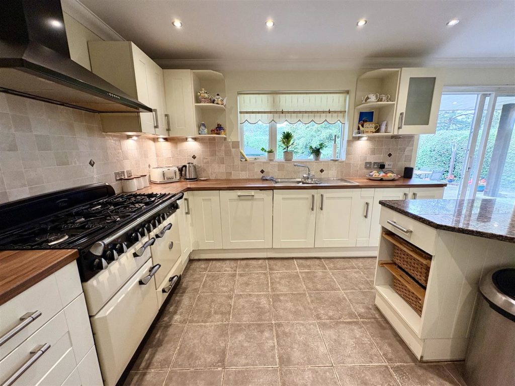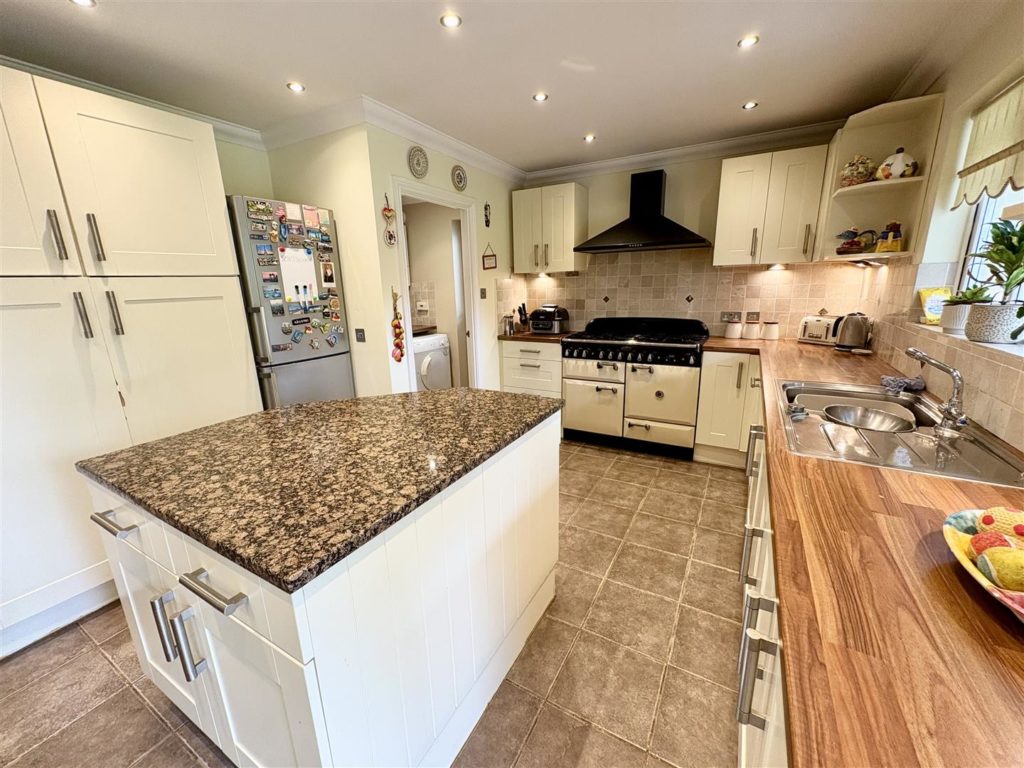 The heart of the home is undoubtedly the large kitchen/breakfast room, which showcases a stylish range of units, an island and integrated appliances, including a dishwasher and a large Range cooker. A separate utility room provides additional convenience with space for a tumble dryer and access to the outside. The ground floor also features a well-appointed shower room and a fourth bedroom with fitted furniture currently arranged as an office/gym.