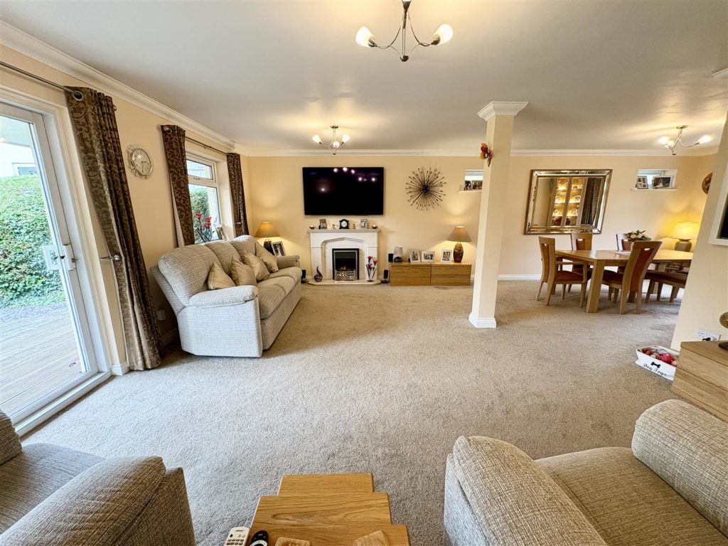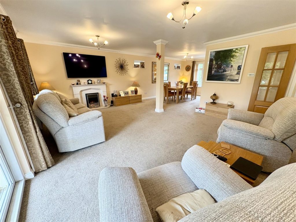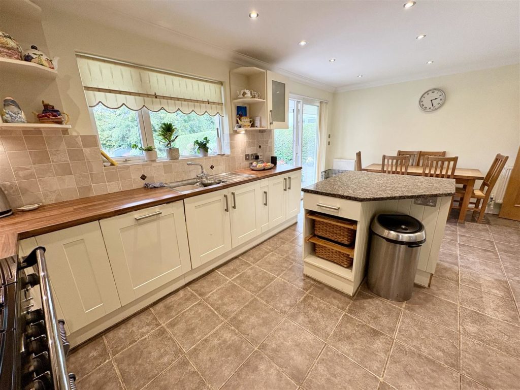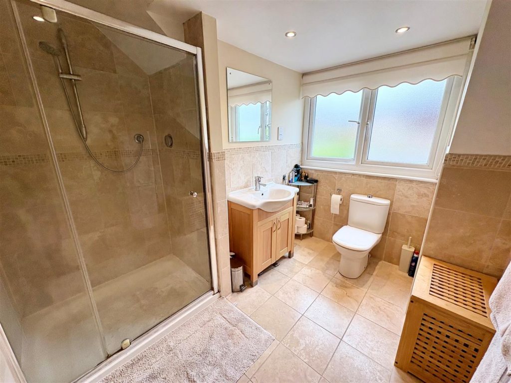 The heart of the home is undoubtedly the large kitchen/breakfast room, which showcases a stylish range of units, an island and integrated appliances, including a dishwasher and a large Range cooker. A separate utility room provides additional convenience with space for a tumble dryer and access to the outside. The ground floor also features a well-appointed shower room and a fourth bedroom with fitted furniture currently arranged as an office/gym.