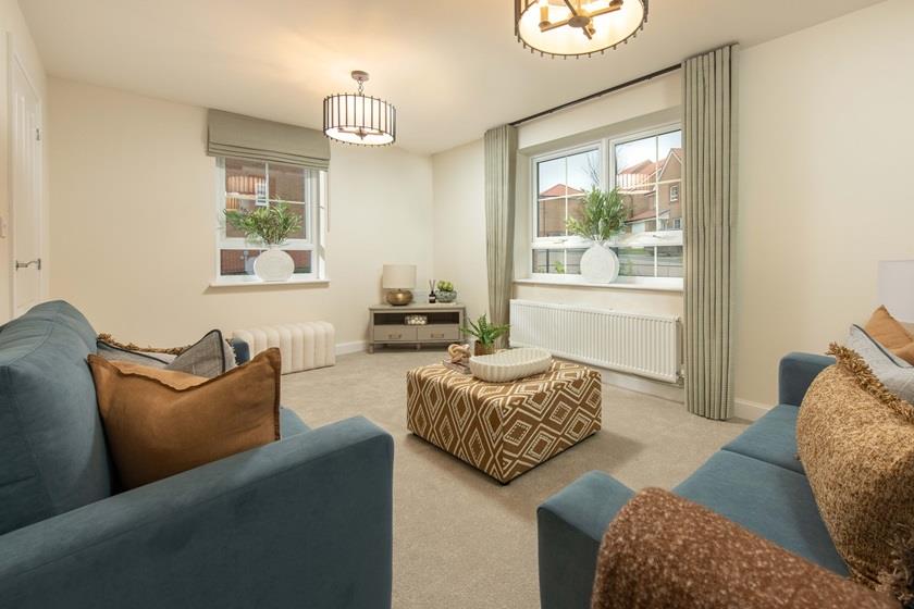This detached home comes with an EV charger and two parking spaces. Downstairs you’ll find an open plan kitchen with French doors to the garden, a spacious lounge and a cloakroom. There's also a storage cupboard in the hallway.