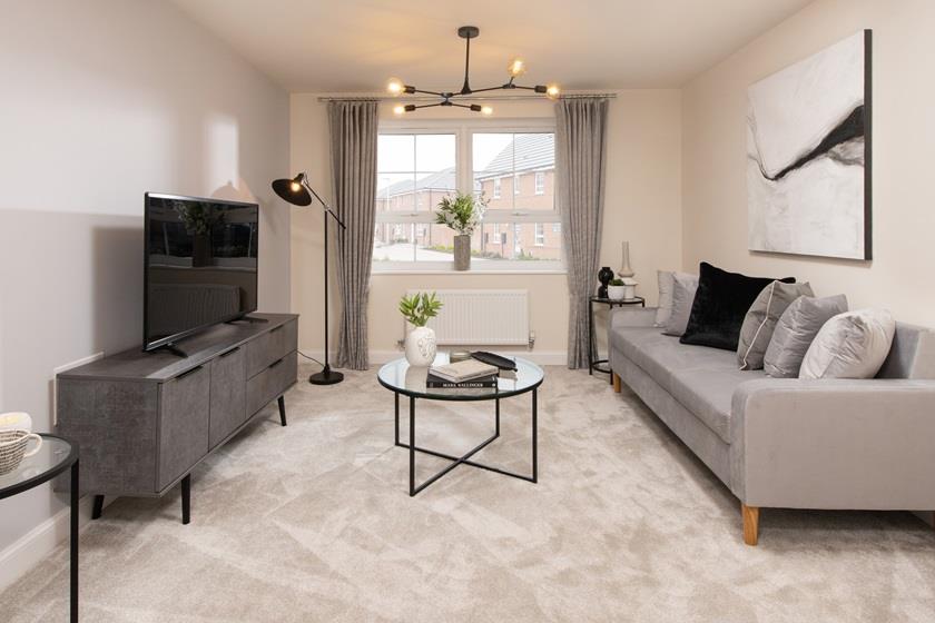 This detached home has a spacious open plan kitchen with French doors to the garden. A bright and airy lounge, cloakroom and some extra storage space complete the ground floor.