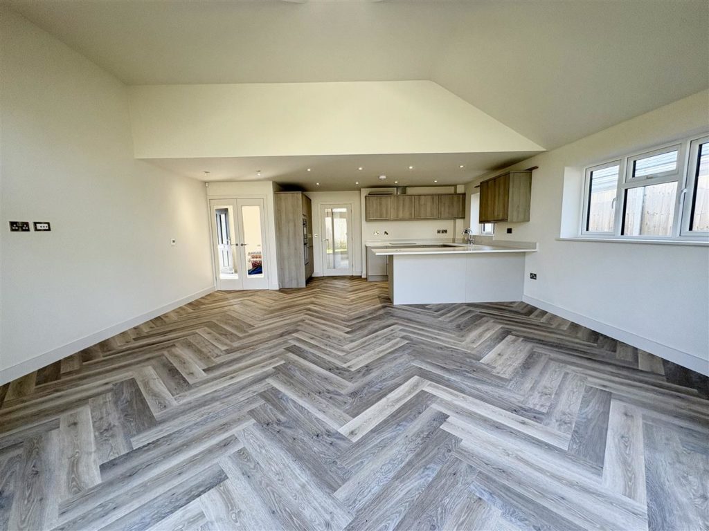 Stylish kitchen/diner with integrated appliances and island breakfast bar.