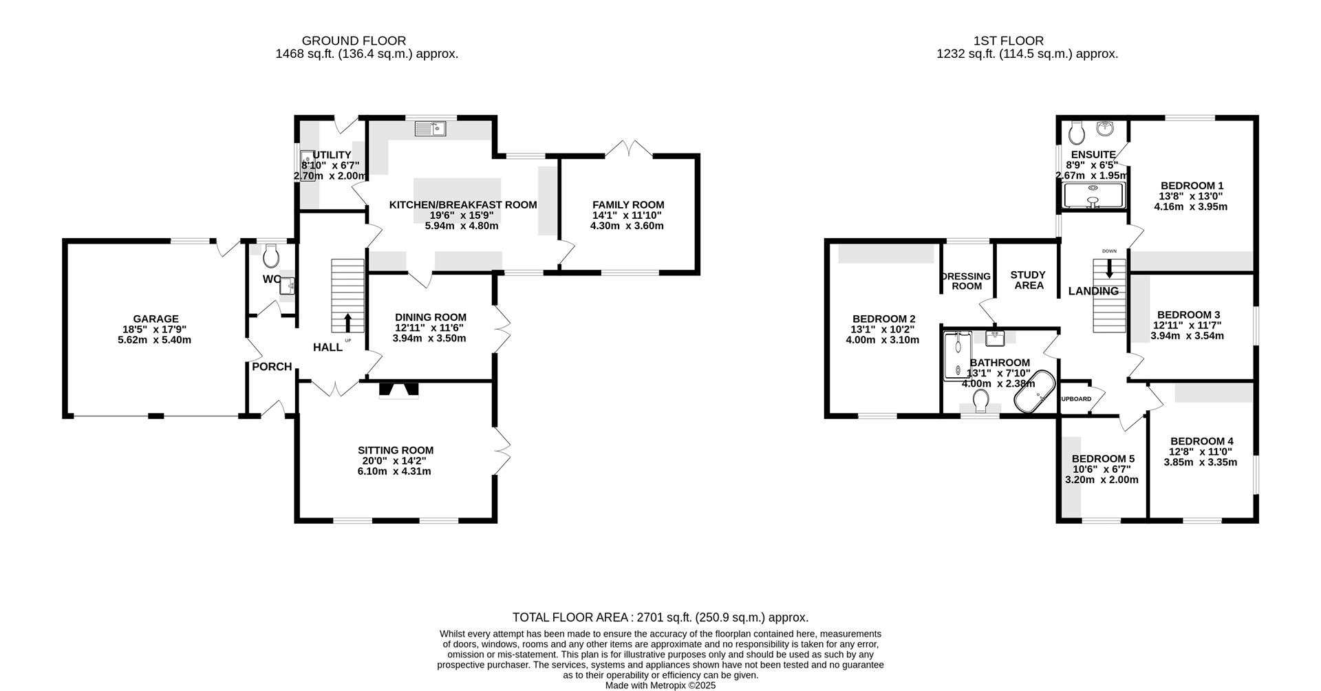 The first floor comprises five generously sized bedrooms, including a luxurious master suite with views over open countryside boasting a luxury ensuite shower room. The stylish bathroom serves the additional bedrooms; both are newly installed with many enhanced features and lighting. The guest room features a dressing area, along with built-in wardrobes. There is a study area leading off the landing which can be used as a hobbies or gaming area.