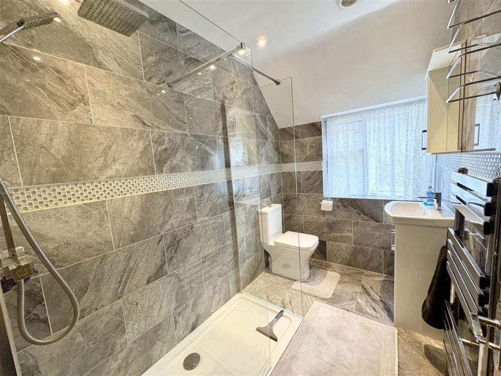 Upstairs, the three double bedrooms are well-proportioned, with the master bedroom enjoying dual aspect views. A storage cupboard, previously a cloakroom, adds to the practicality of the space. The modern shower room is a standout feature, showcasing a large walk-in shower and fully tiled walls and floor.