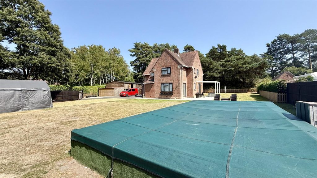 The outdoor space is equally impressive, with a majority of the garden laid to lawn and surrounded by close-board timber fencing, ensuring privacy. A highlight of the garden is the outdoor pool, perfect for summer relaxation and entertaining. With numerous outbuildings, including a barn/workshop and additional storage options, this property is a true gem for those seeking a blend of comfort, style, and functionality siding onto Heathland.