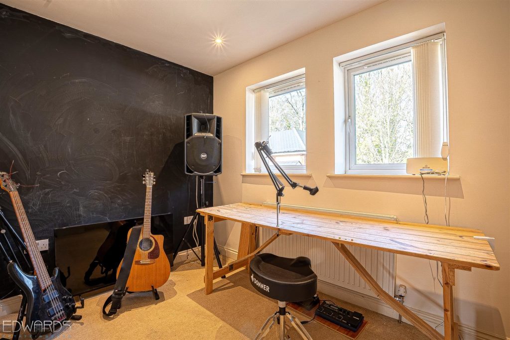 The property boasts three spacious double bedrooms, alongside a fourth single bedroom with a built-in wardrobe. The main bedroom features a modern ensuite shower room and access to a shared ‘jack and jill’ sun balcony. The family bathroom is fitted with a contemporary three-piece suite, ensuring comfort for all.